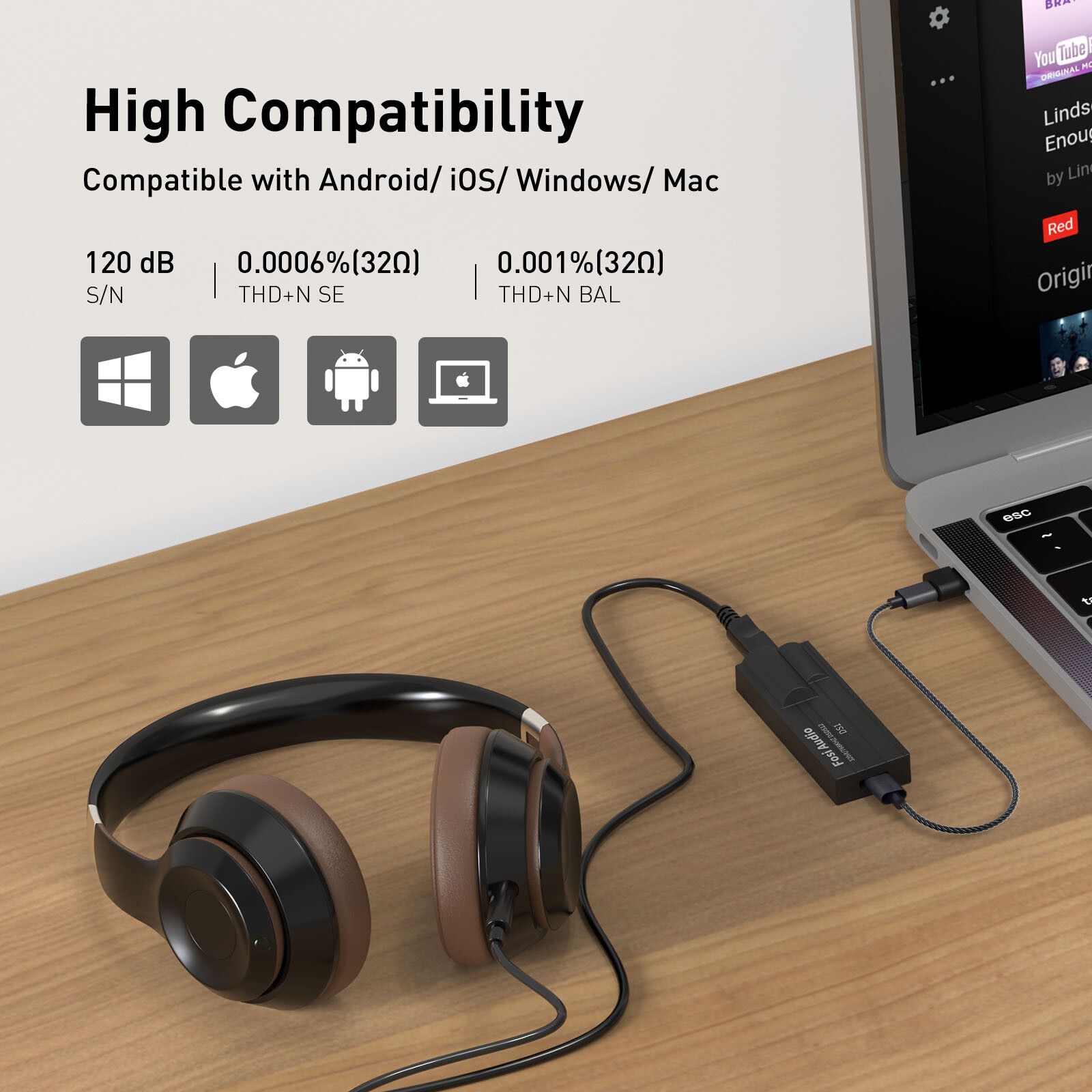 Small USB DAC headphone amplifier with optimized HiFi audio architecture ensures high-resolution sound quality. The portable USB DAC DS1 compatible with various systems like Android/iOS/Windows/Mac, compatible with the latest devices: phones/computers/tablets/laptops/audio players, etc. Wonderfully versatile when commuting in the home, office, or gaming.