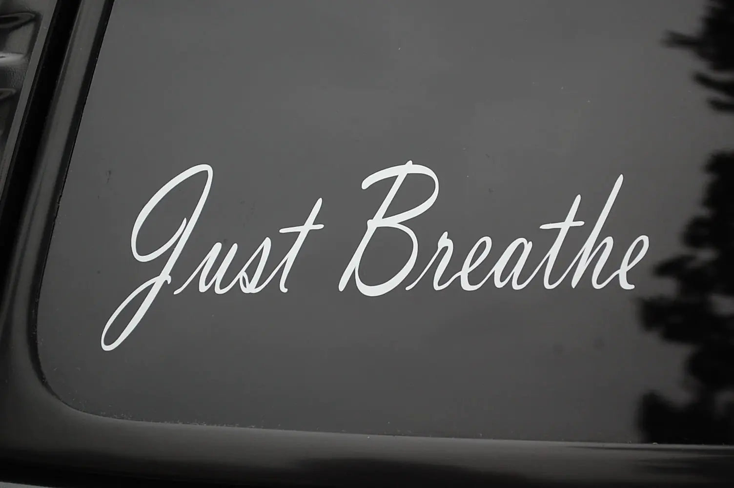 Just Breathe Vinyl Sticker Decal (V94) Wellness Inspiration Yoga Meditation (Blue)