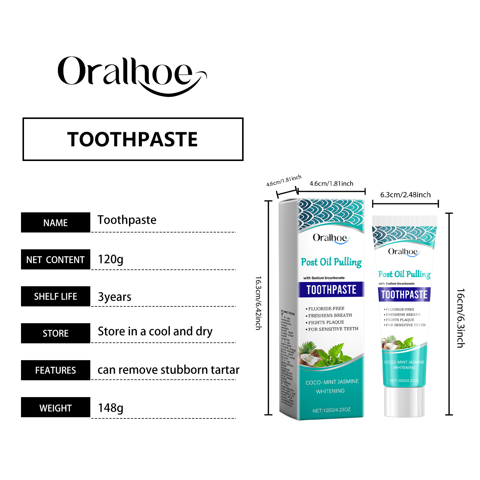 Oralhoe Dental Care Toothpaste, Dental Care Clean Yellow Teeth, Remove Stains, Dirt And Mild Fresh Teeth